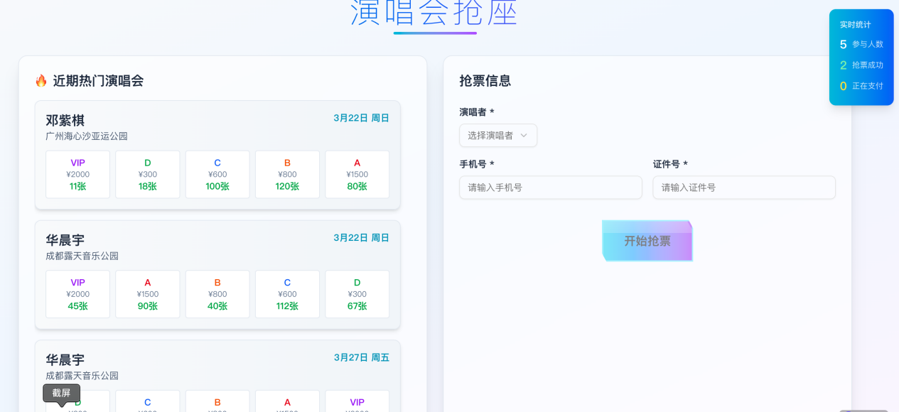 3、系统类作品:演唱会抢票系统